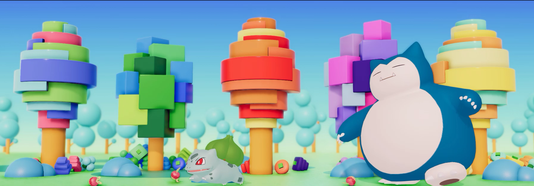 道路の両端にはリズムと連動し配置されたポケモンたちが数多く並んでおり、すれ違うタイミングで設置されたボタンを押すことで、世界が色付き、心地よいエフェクトやサウンドがインタラクティブに生成。
