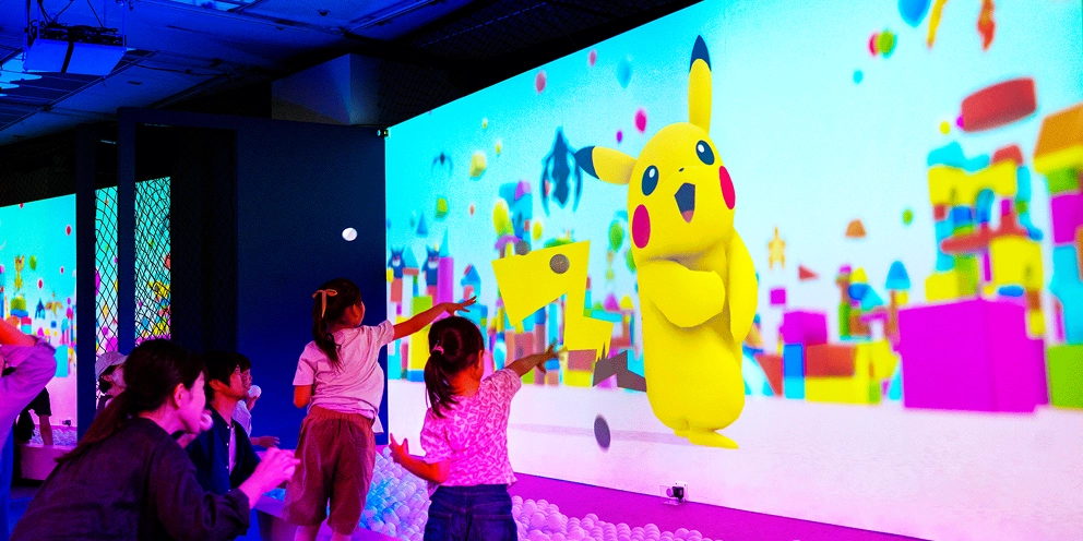 ポケモンの世界を「色」と「動き」で楽しむ体験型インスタレーションで、身体を動かしながらポケモンと触れ合うことができます。来場者の動きに呼応してプロジェクションや映像が変化し、目の前の世界が鮮やかな色彩で満たされる体験は、まさにポケモンたちが持つ多様な個性を表現しており、ゲームともアニメとも異なる、新しいポケモン体験を創出しました。五感を刺激する演出で、子どもから大人まで楽しめる没入型コンテンツです。