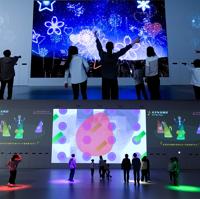投影される映像は「朝」「昼」「夕暮れ」「夜」と時間帯に応じて変化し、イルカの登場や夜空に広がる花火といった演出を組み合わせることで、訪れるたびに新鮮な体験を提供。