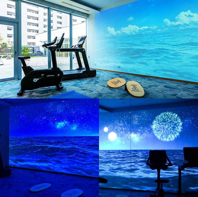 東急ステイ沖縄那覇では、フィットネススペースを、まるで沖縄の海の上を心地よく漂うような、没入感あふれる空間へとアップデートしました。