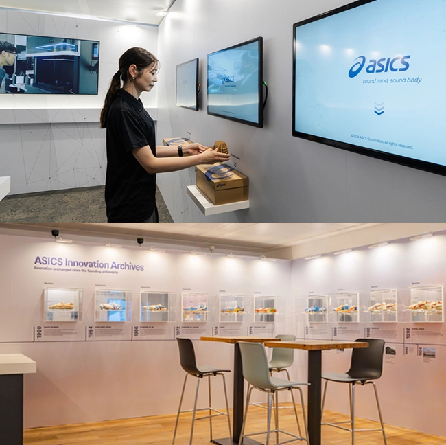 ASICSのブランドフィロソフィーを体感できるグローバル拠点です。ASICSの歴史・伝統とスポーツテクノロジーをかけ合わせ、訪れる人々にASICSのビジョンと価値観を直感的に伝える空間を創出。インタラクティブな展示やVRの没入型体験コンテンツを通じて、ASICSブランドの革新性とパフォーマンスを発信。空間DXで、世界中のアスリートやファンをつなぐ、新たなブランド体験の場です。