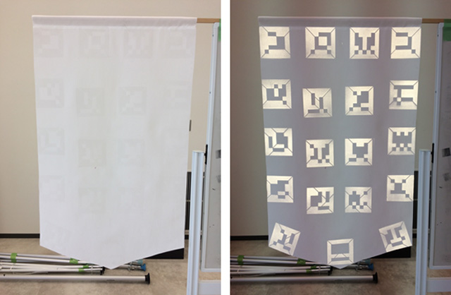 そのフラッグを赤外線カメラを通すことでマーカーの位置を把握することができます。それによって風に揺れるフラッグの形状の変化をリアルタイムに取得することが可能になります。