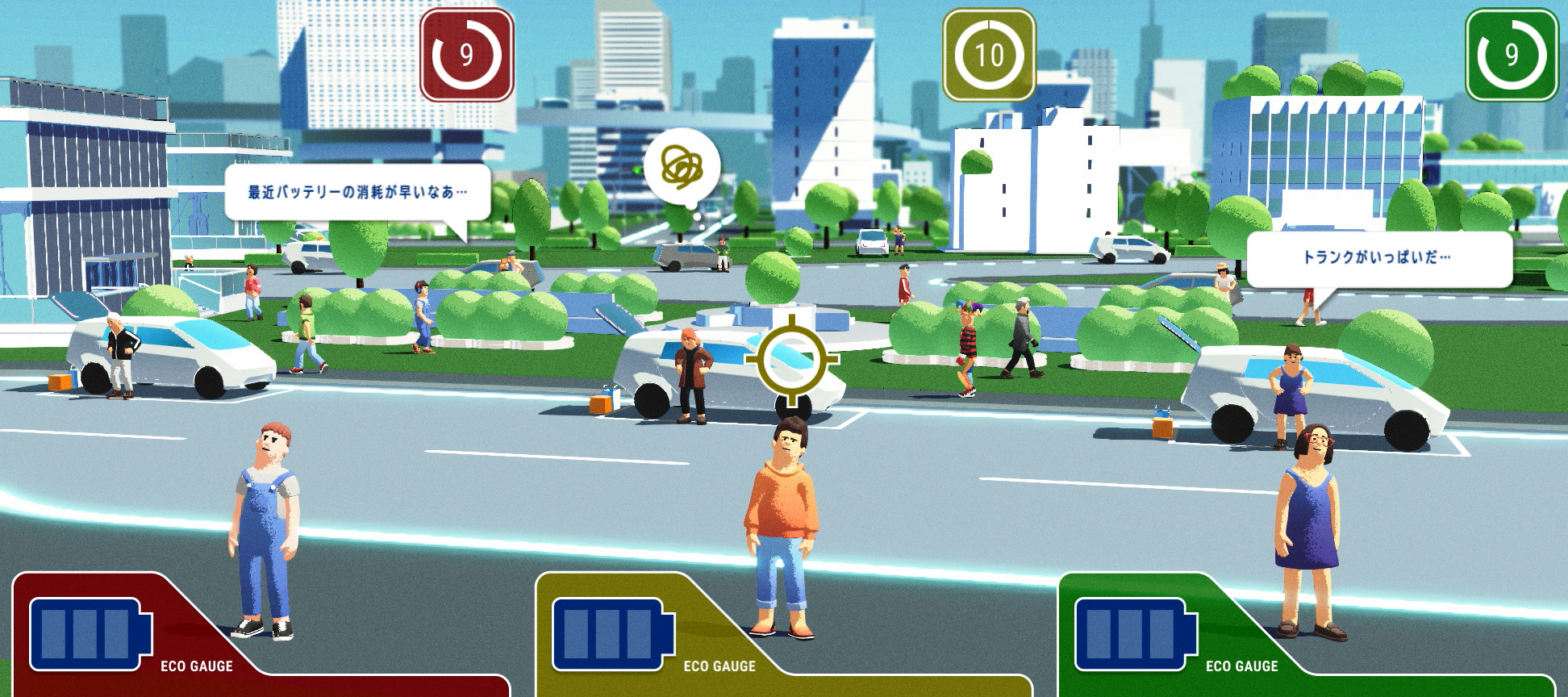 三菱電機モビリティの技術が、自動車の電動化を起点として、街のインフラや環境保全へと広がっていく未来を表現しました。ビルや家庭のエネルギーマネジメントと連携した給電の仕組みや、電池の劣化状態・走行傾向をもとにした最適な充電計画の提示など、エネルギーを賢く使う社会の姿を紹介。さらに、車両設計の進化によって積載スペースが拡張され、より快適で実用的なモビリティへと進化していく様子を、未来の街のワンシーンとして体験できるコンテンツとしました。